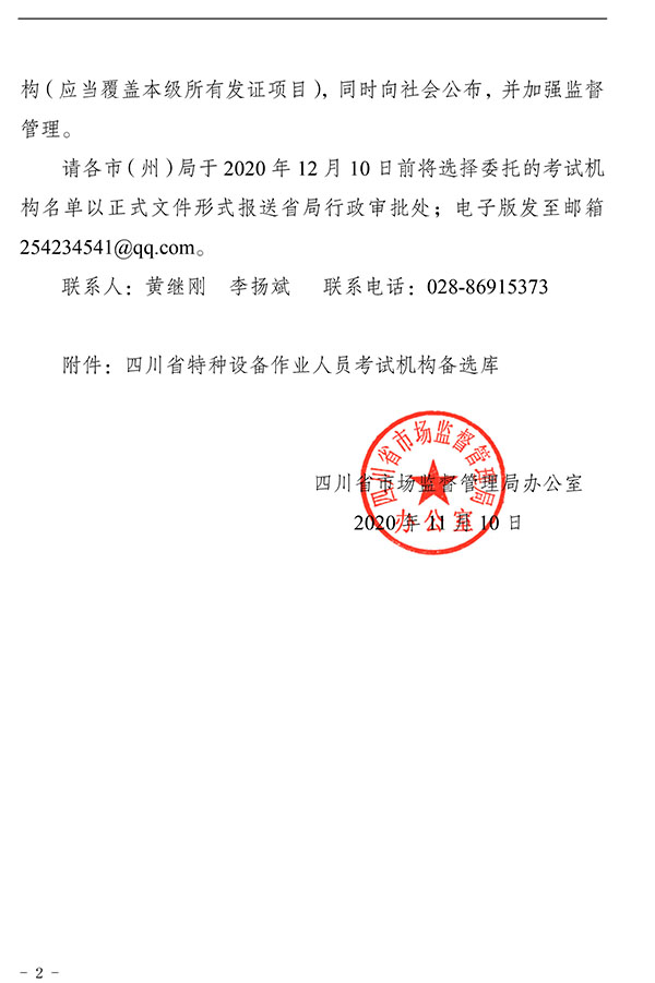 關于公布四川省特種設備作業(yè)人員考試機構(gòu)備選庫的通知